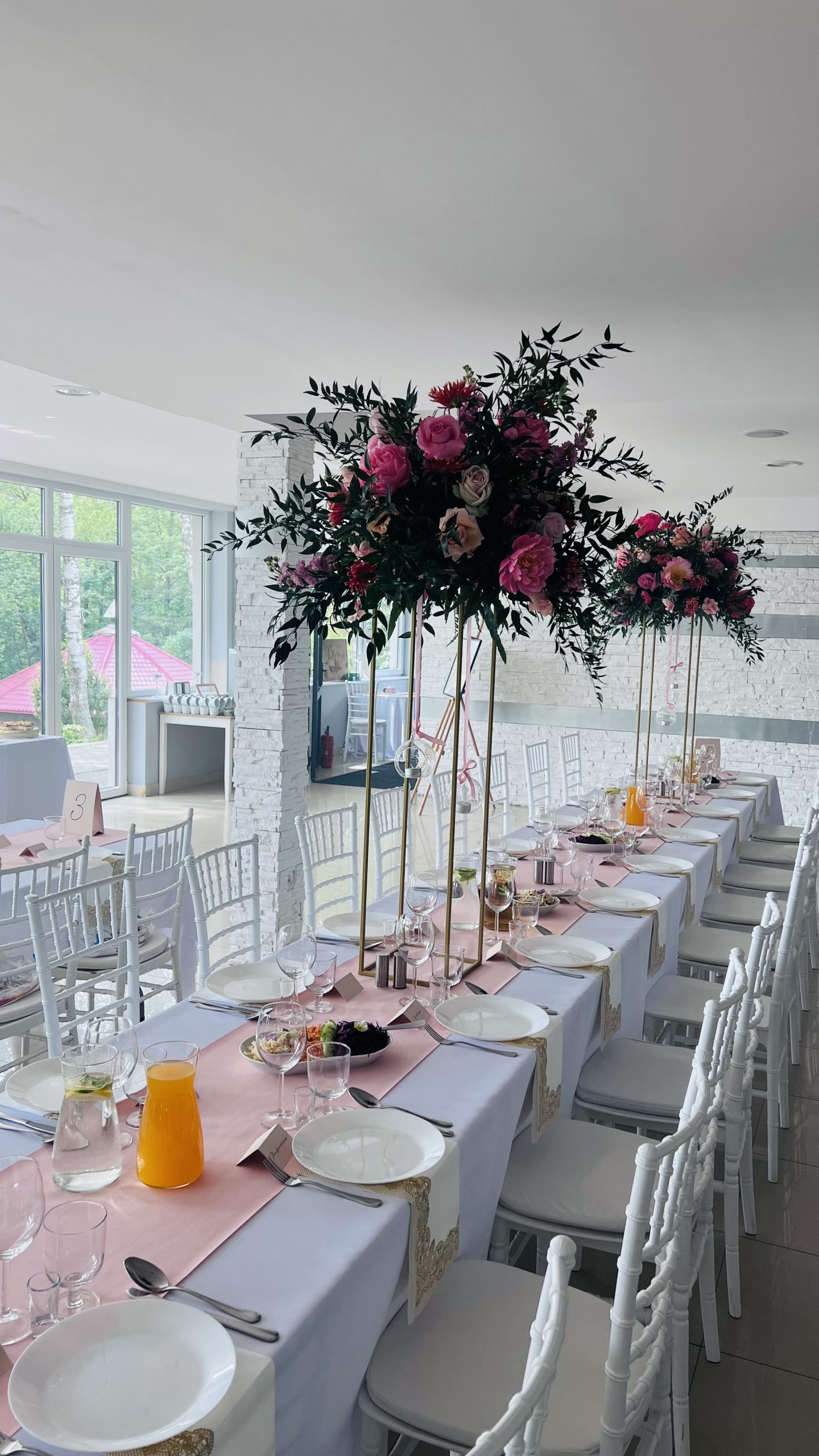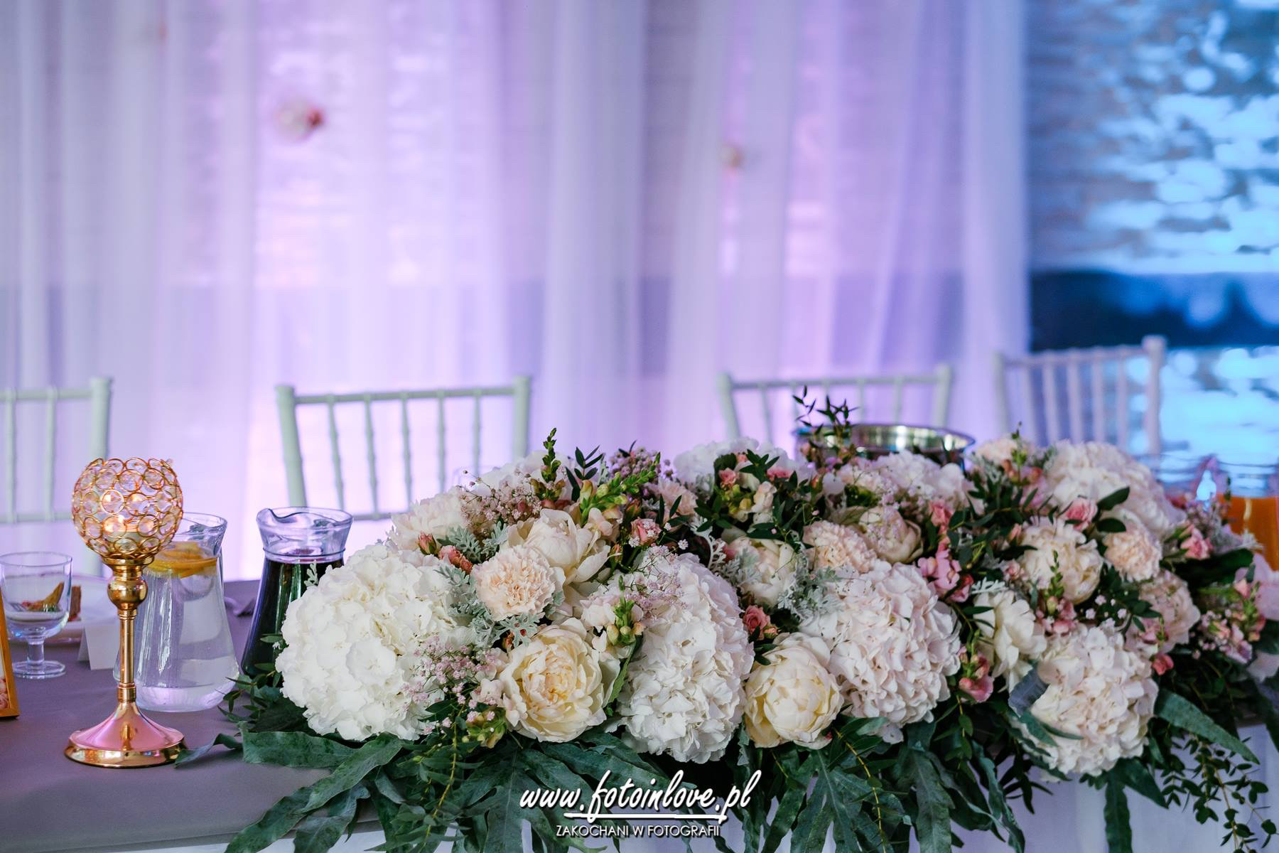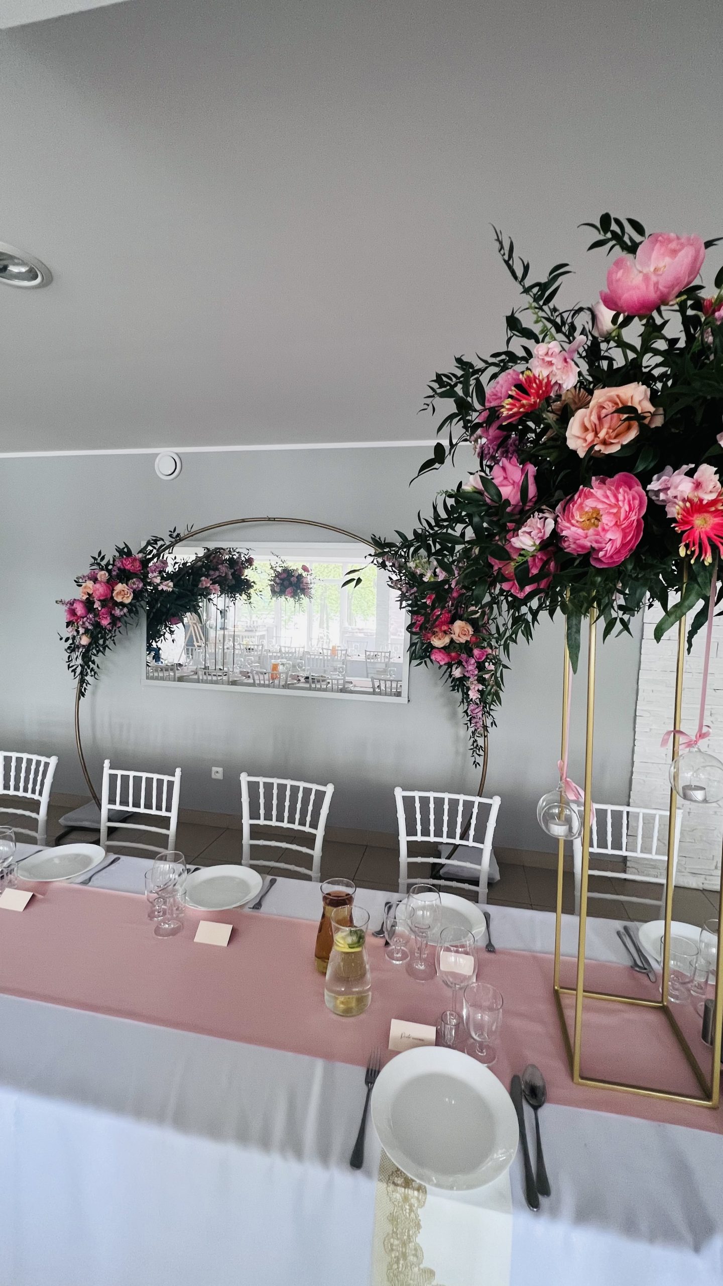 Główna sala restauracyjna mieści do 120 osób, gdzie do dyspozycji oddajemy zadaszony taras. Możliwe ustawienie stołów prostokątnych lub okrągłych. Delikatna kolorystyka sali doskonale komponuje się z różnorodnymi dekoracjami weselnymi.