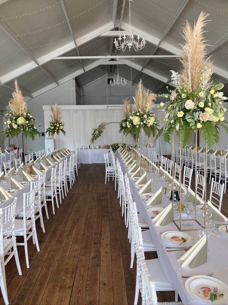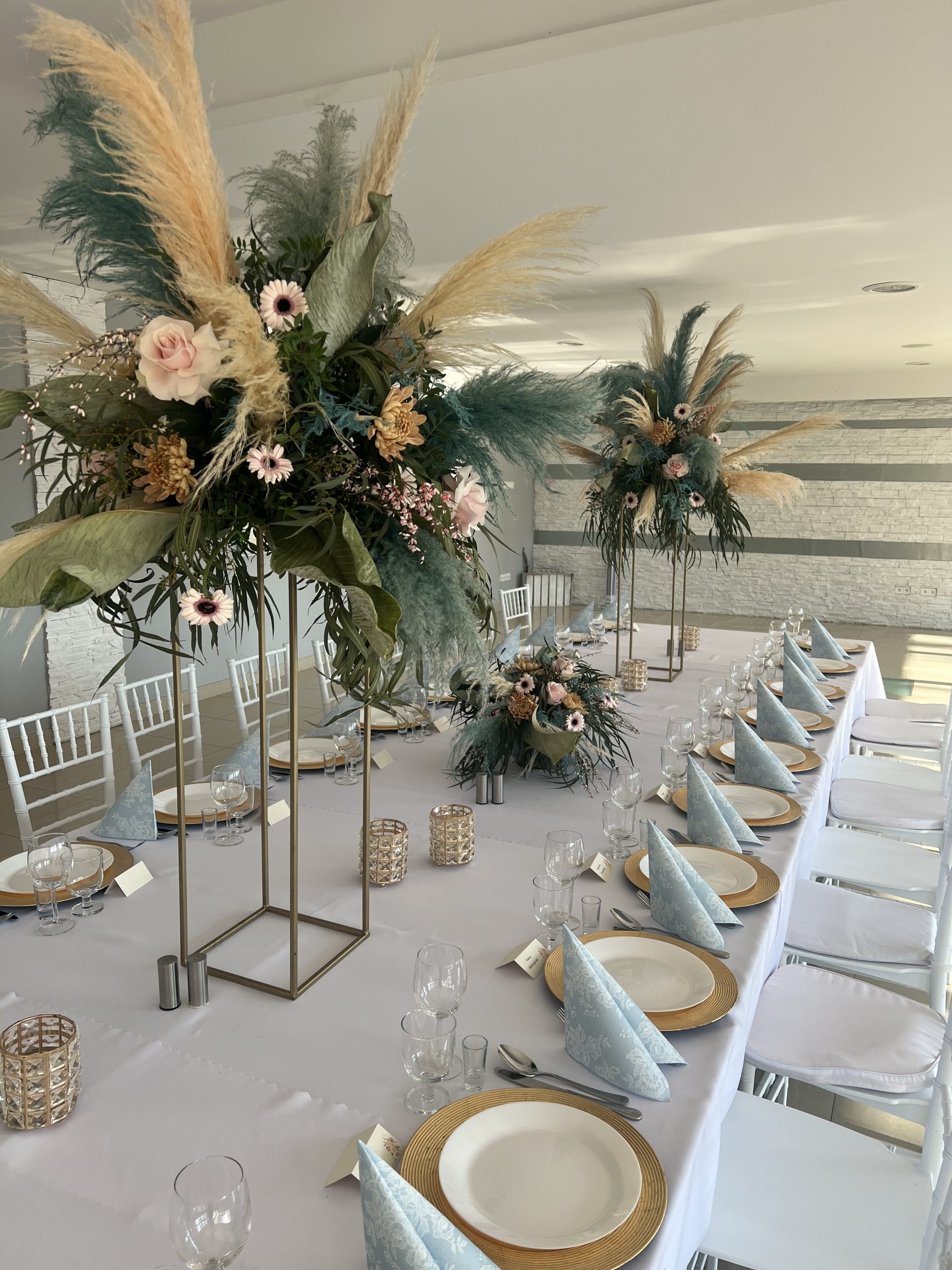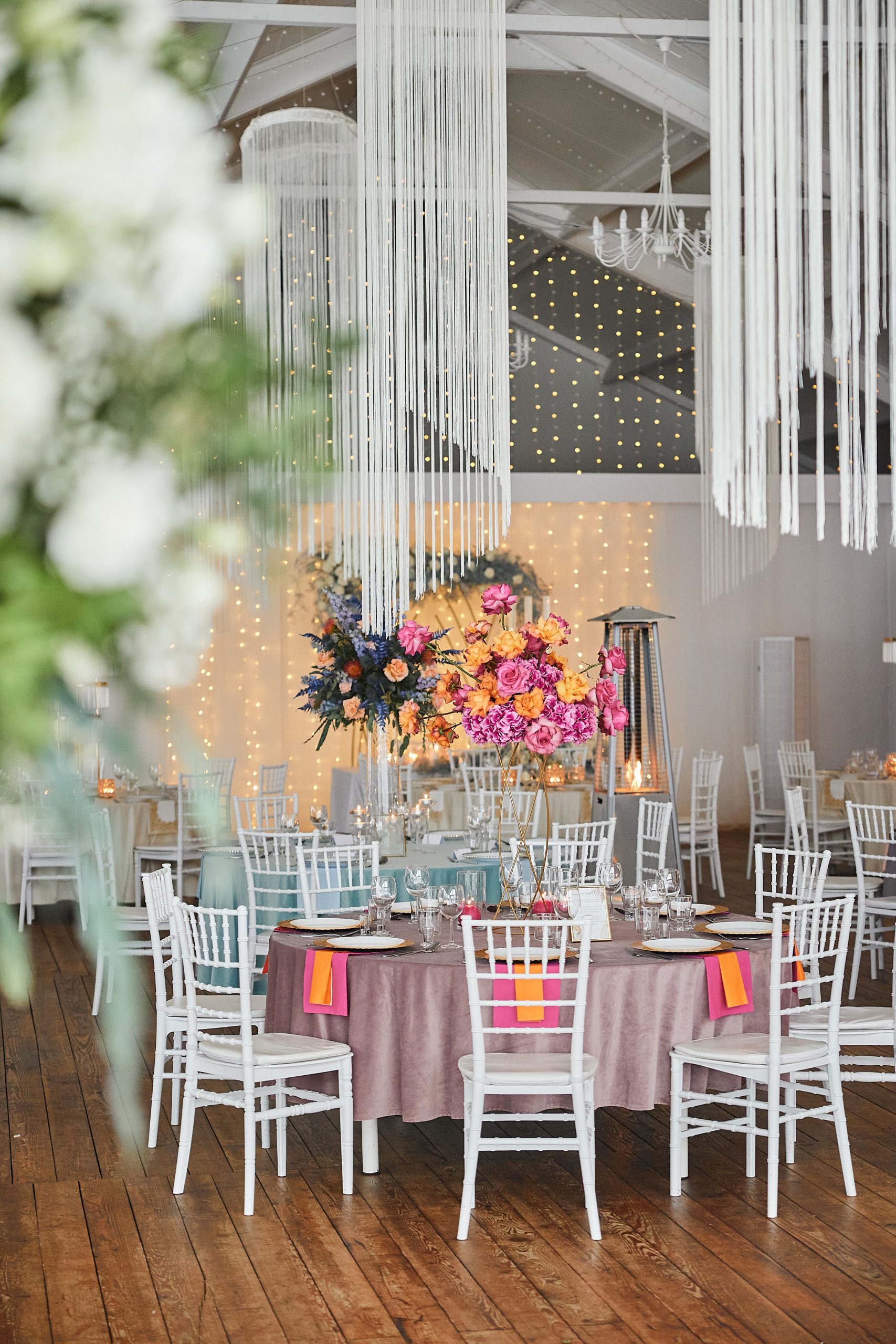 Główna sala restauracyjna mieści do 120 osób, gdzie do dyspozycji oddajemy zadaszony taras. Możliwe ustawienie stołów prostokątnych lub okrągłych. Delikatna kolorystyka sali doskonale komponuje się z różnorodnymi dekoracjami weselnymi.
