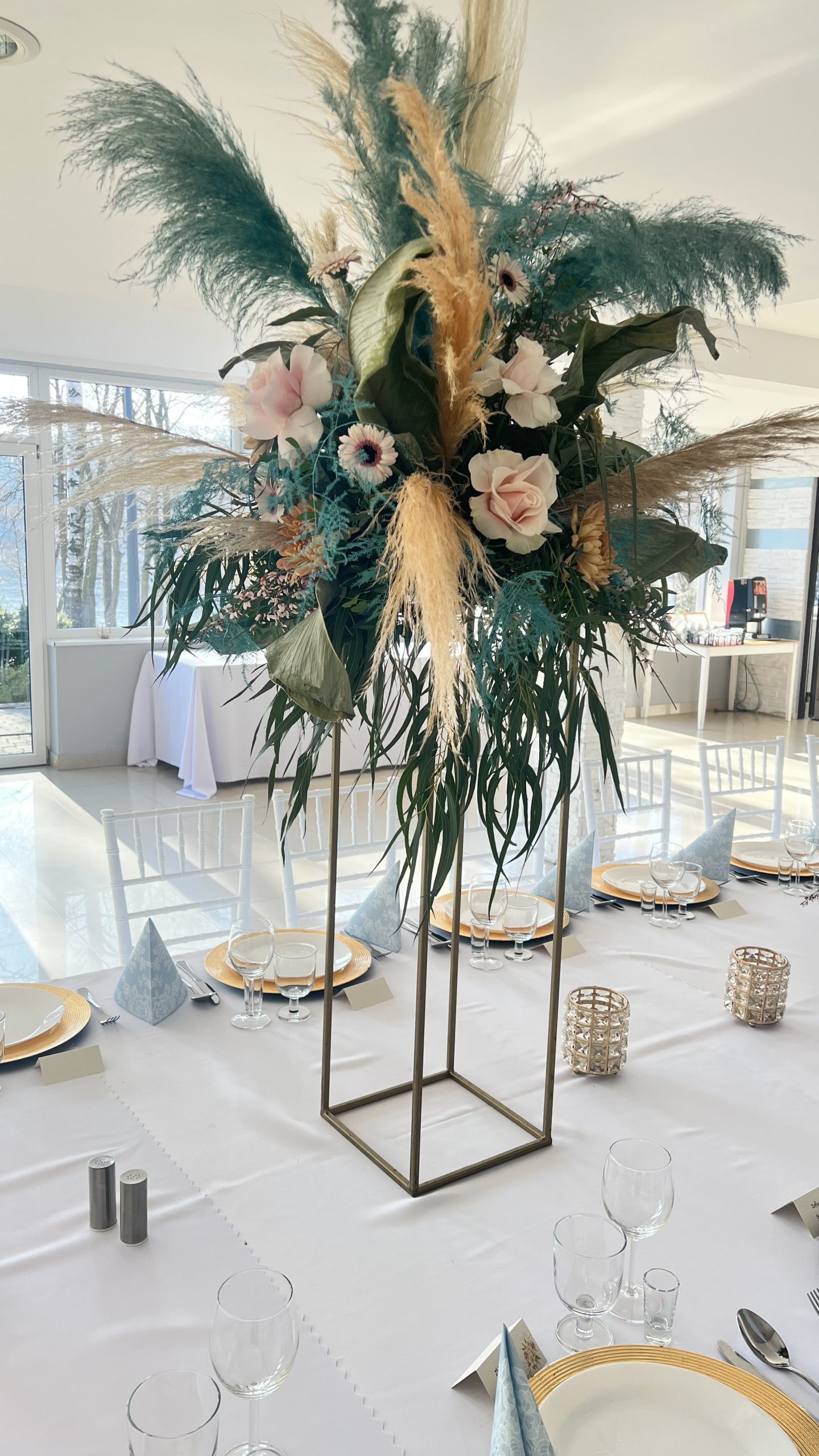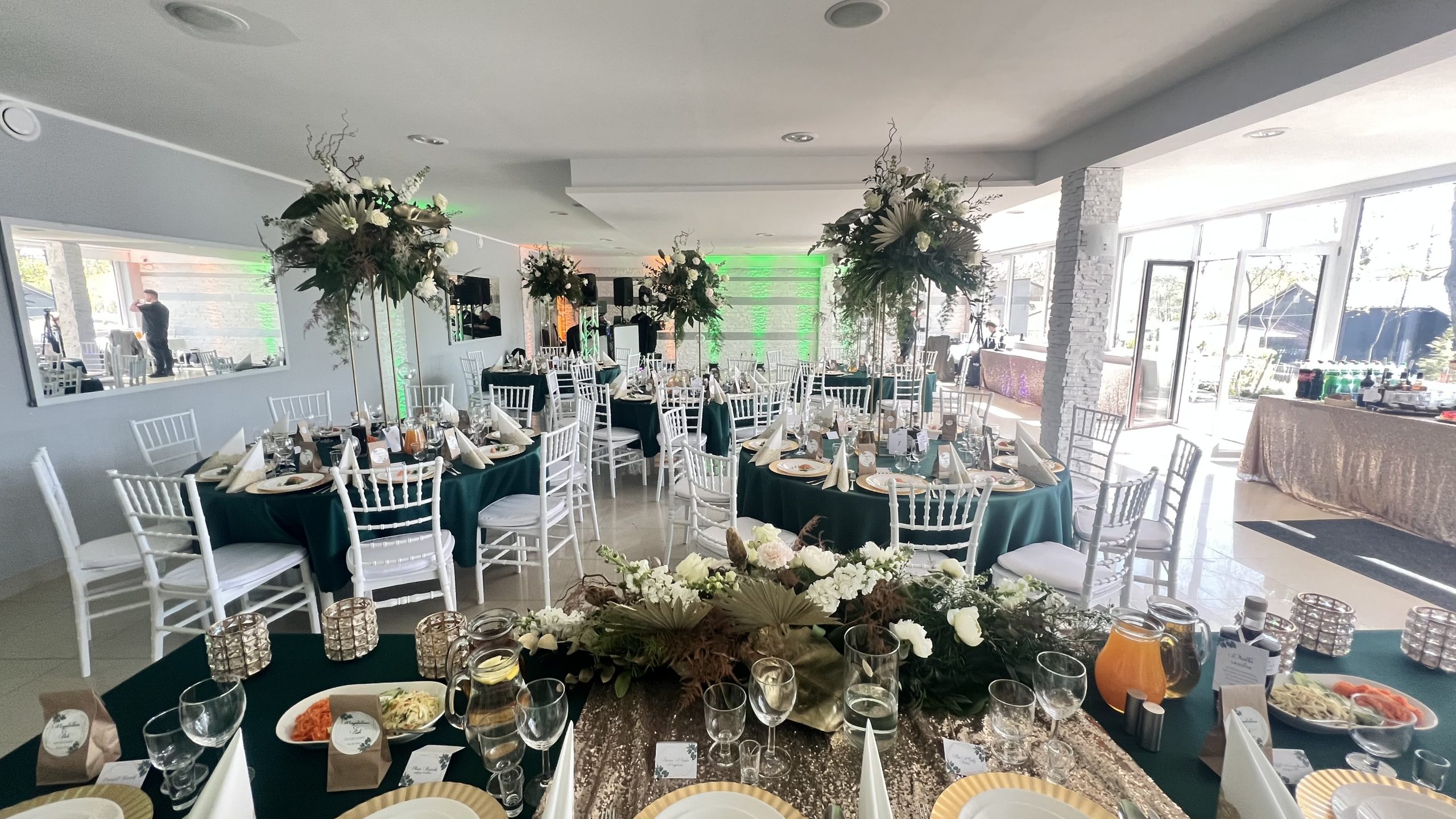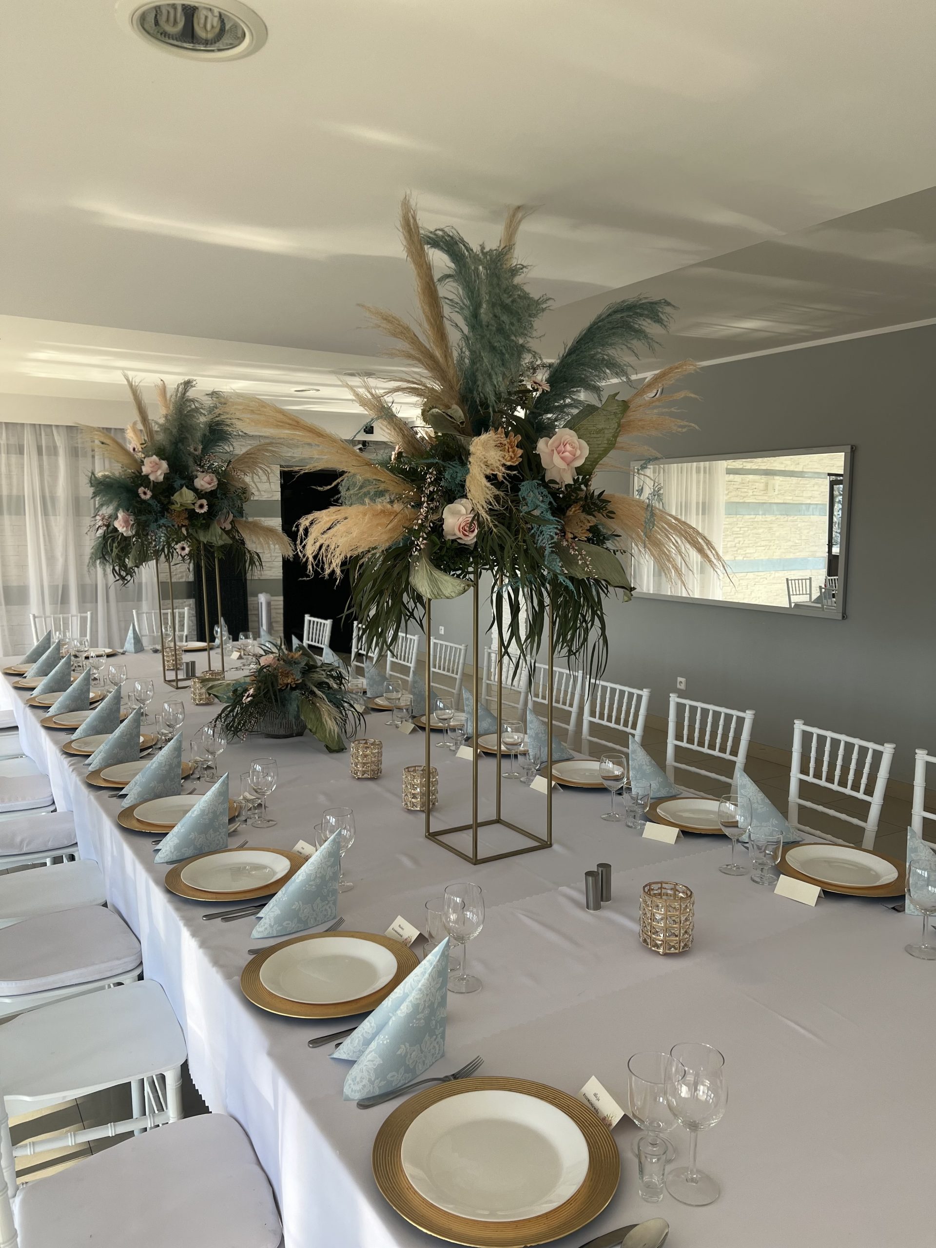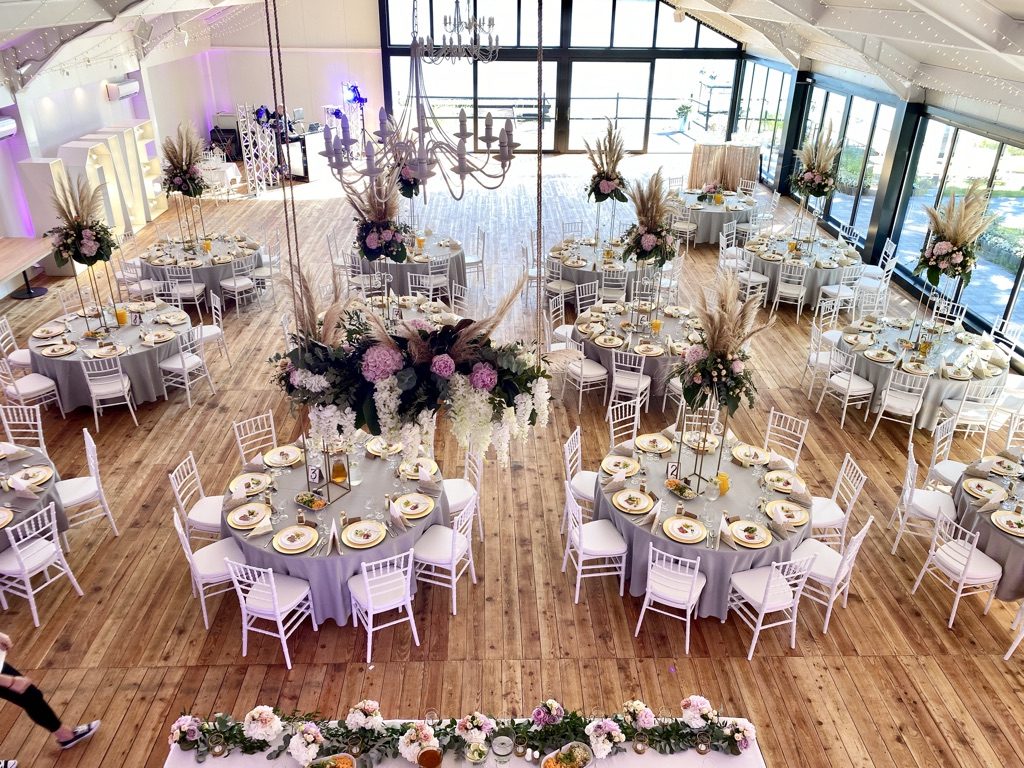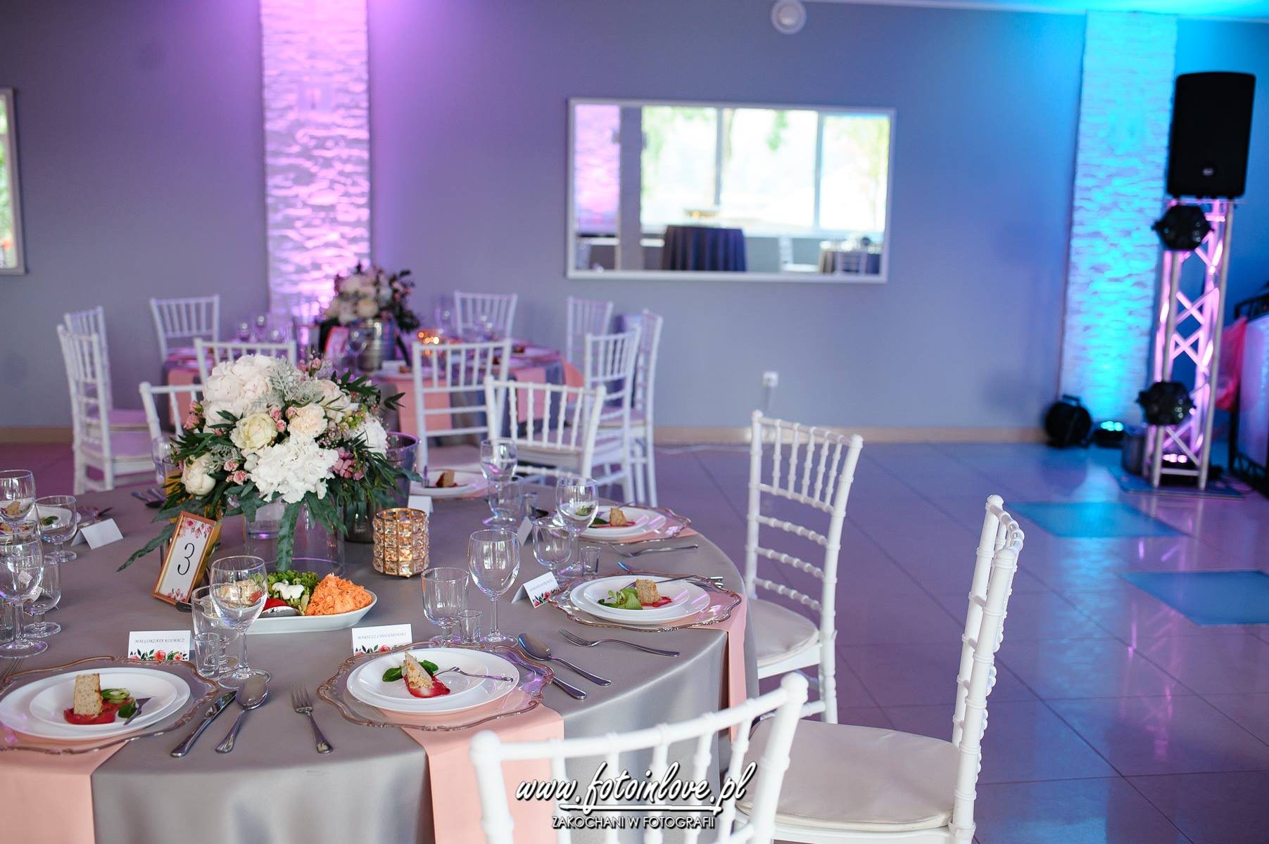 Sala bankietowa z widokiem na jezioro utrzymana w stylu nowoczesnym umożliwia organizację przyjęć do 70 osób. Do dyspozycji gości oddajemy także urokliwy taras widokowy. Istnieje możliwość organizacji przyjęcia weselnego przy okrągłych oraz prostokątnych stołach.