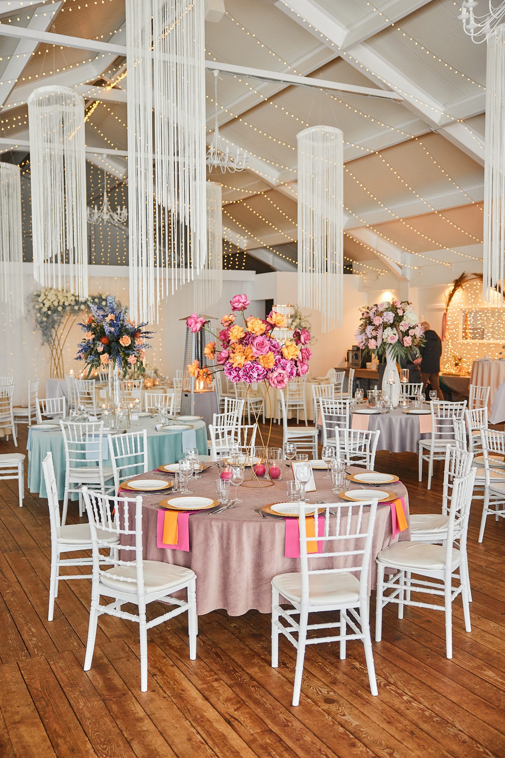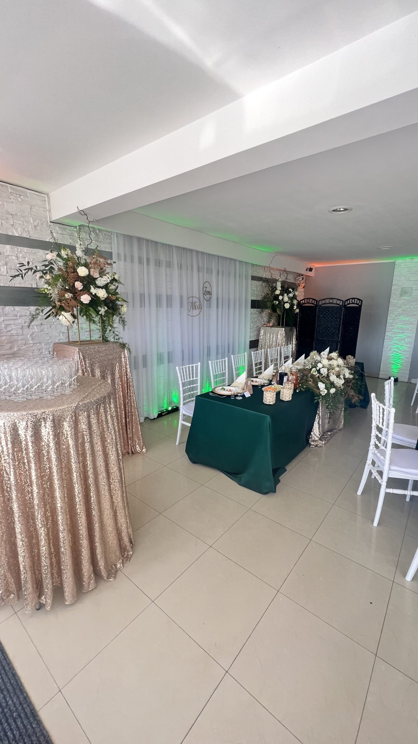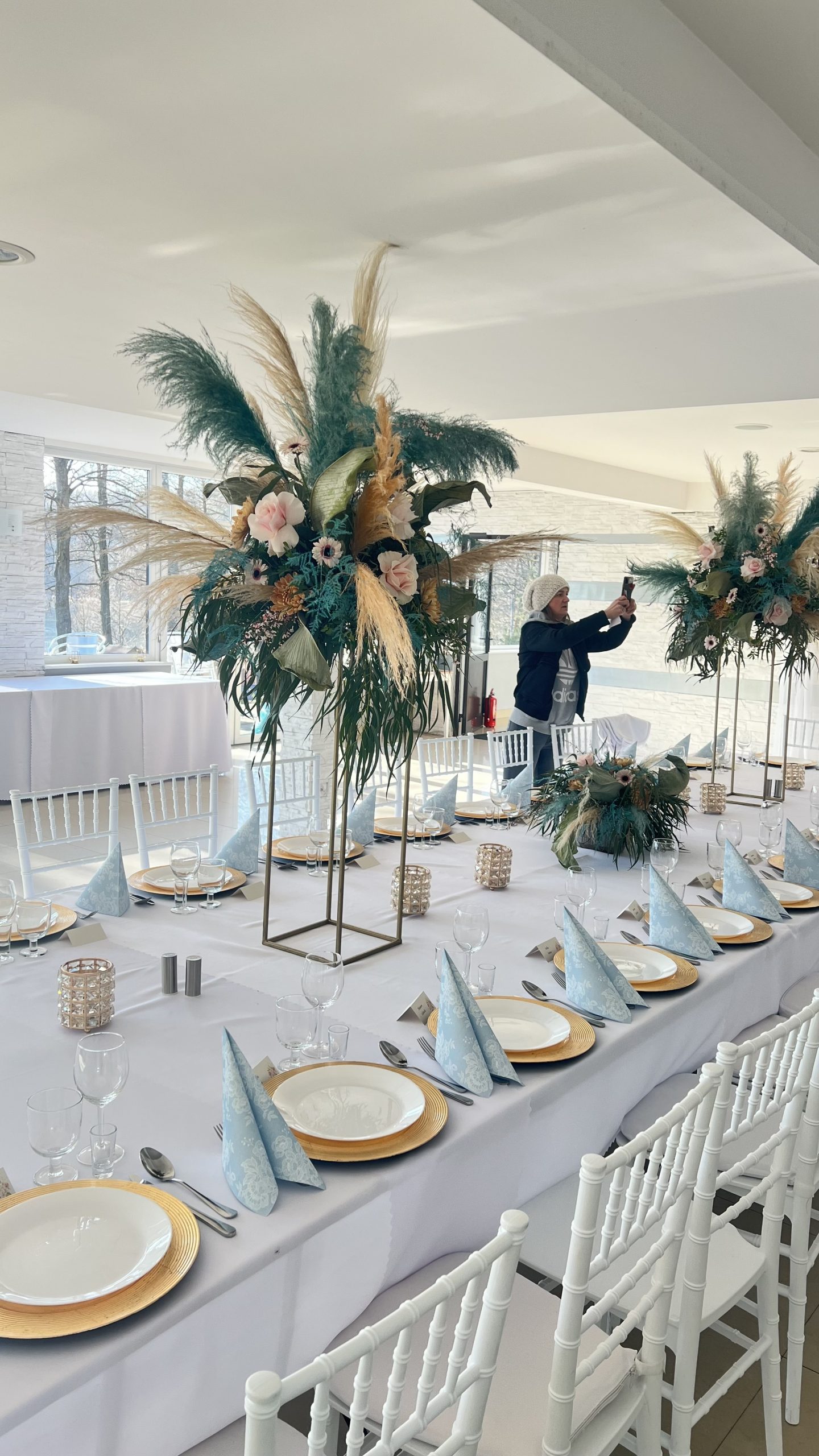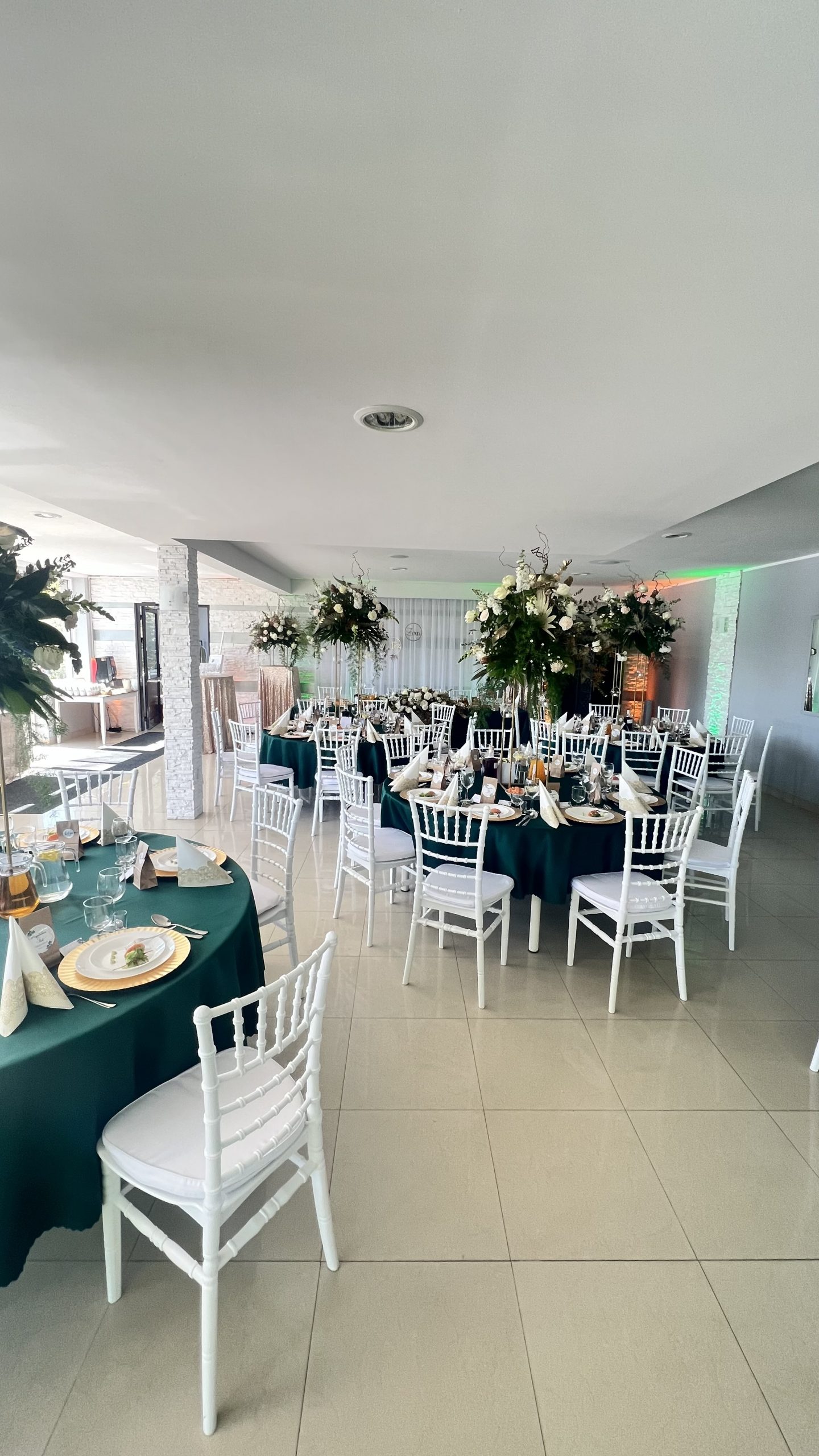 Sala bankietowa z widokiem na jezioro utrzymana w stylu nowoczesnym umożliwia organizację przyjęć do 70 osób. Do dyspozycji gości oddajemy także urokliwy taras widokowy. Istnieje możliwość organizacji przyjęcia weselnego przy okrągłych oraz prostokątnych stołach.